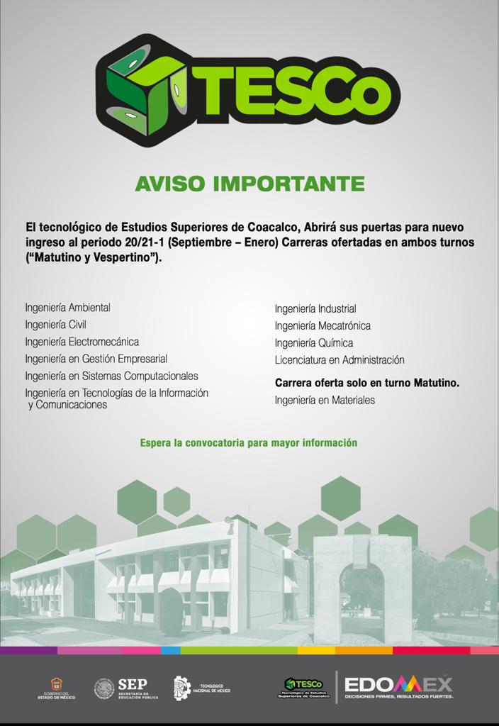 A toda la comunidad del Tecnológico de Estudios Superiores de Coacalco se le